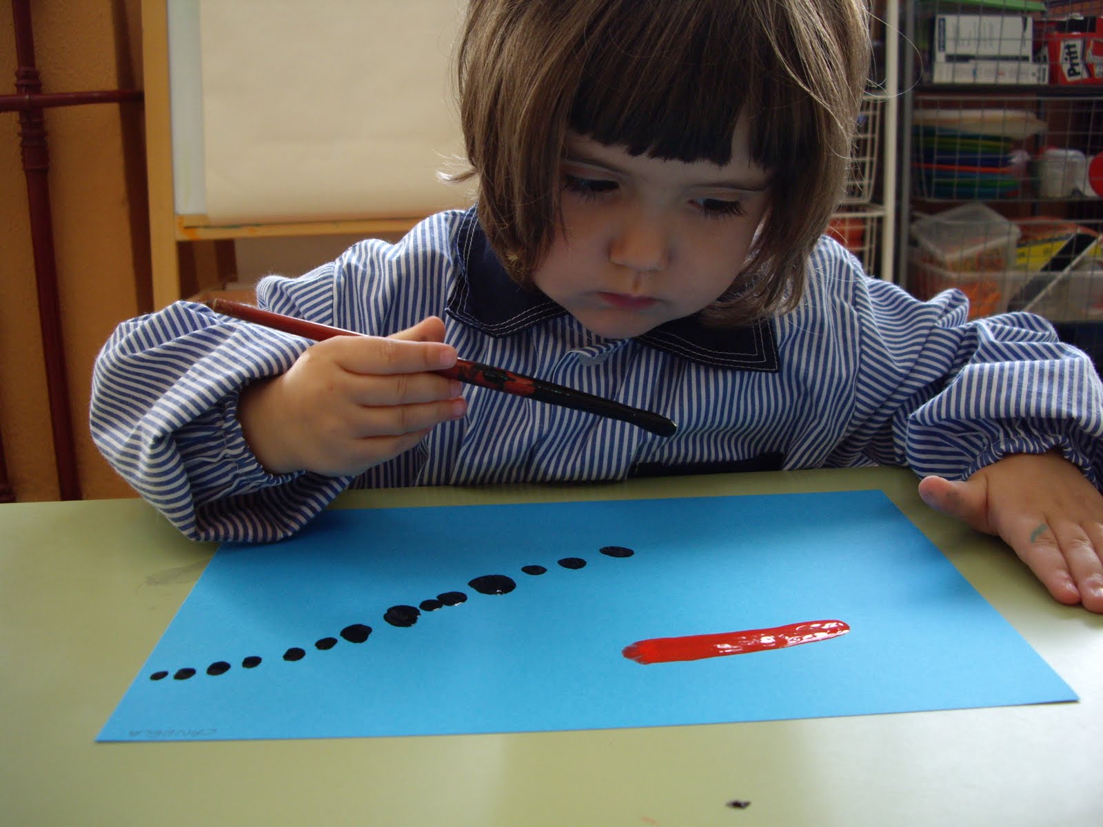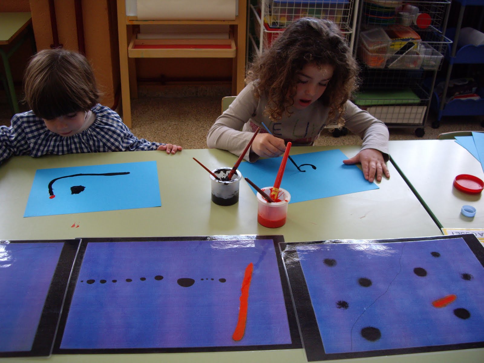 VOLEM APRENDRE A PINTAR COM JOAN MIRÓ I A ELL LI AGRADAVA MOLT UTILITZAR COSES DIFERENTS PER PINTAR COM PALS, POALS, GANIVETS I FORQUETES, I TAMBÉ... GRANERES!!!