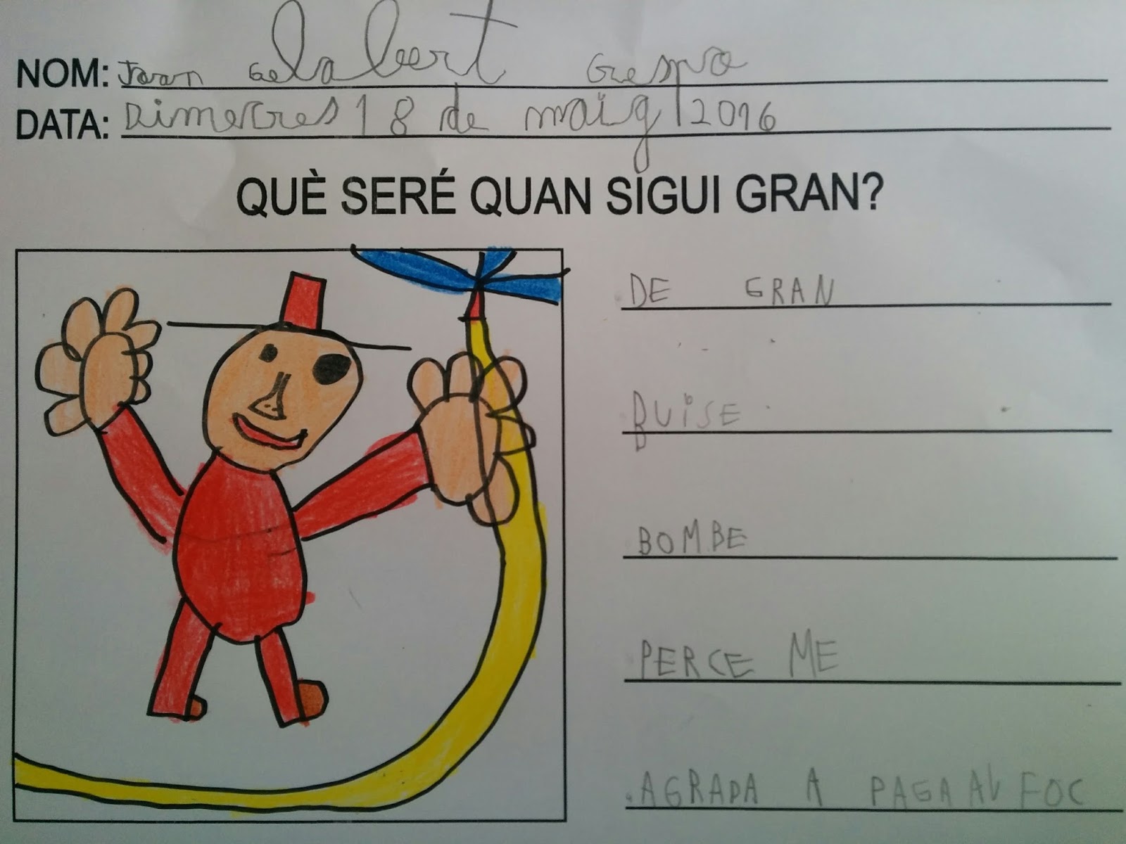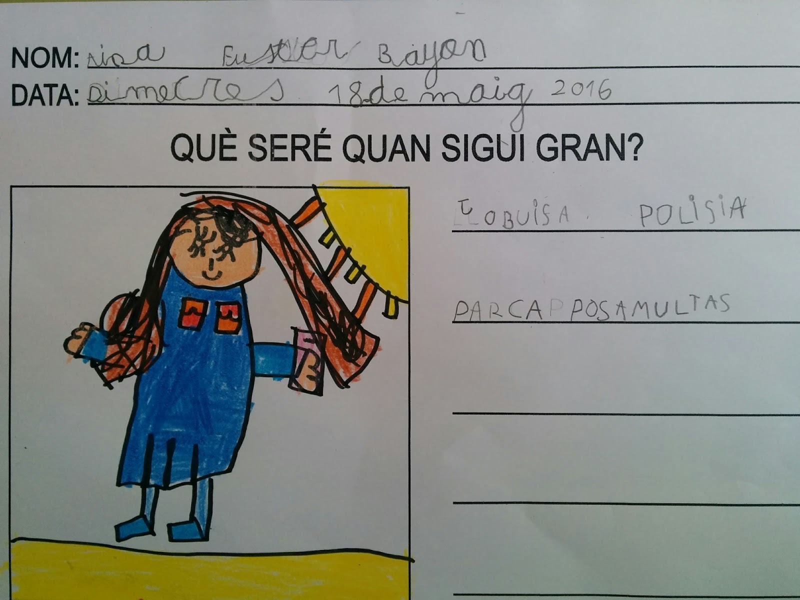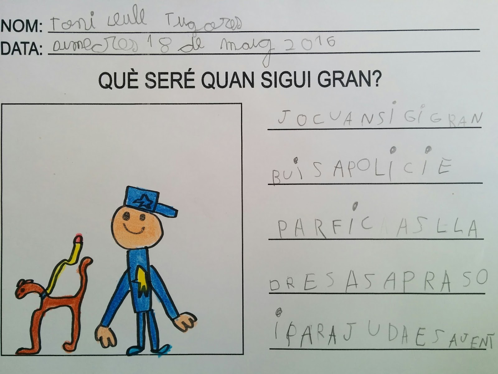 "JO DE GRAN VULL SER POLICIA PER FICAR ES LLADRES A SA PRESÓ I PER AJUDAR A SA GENT"