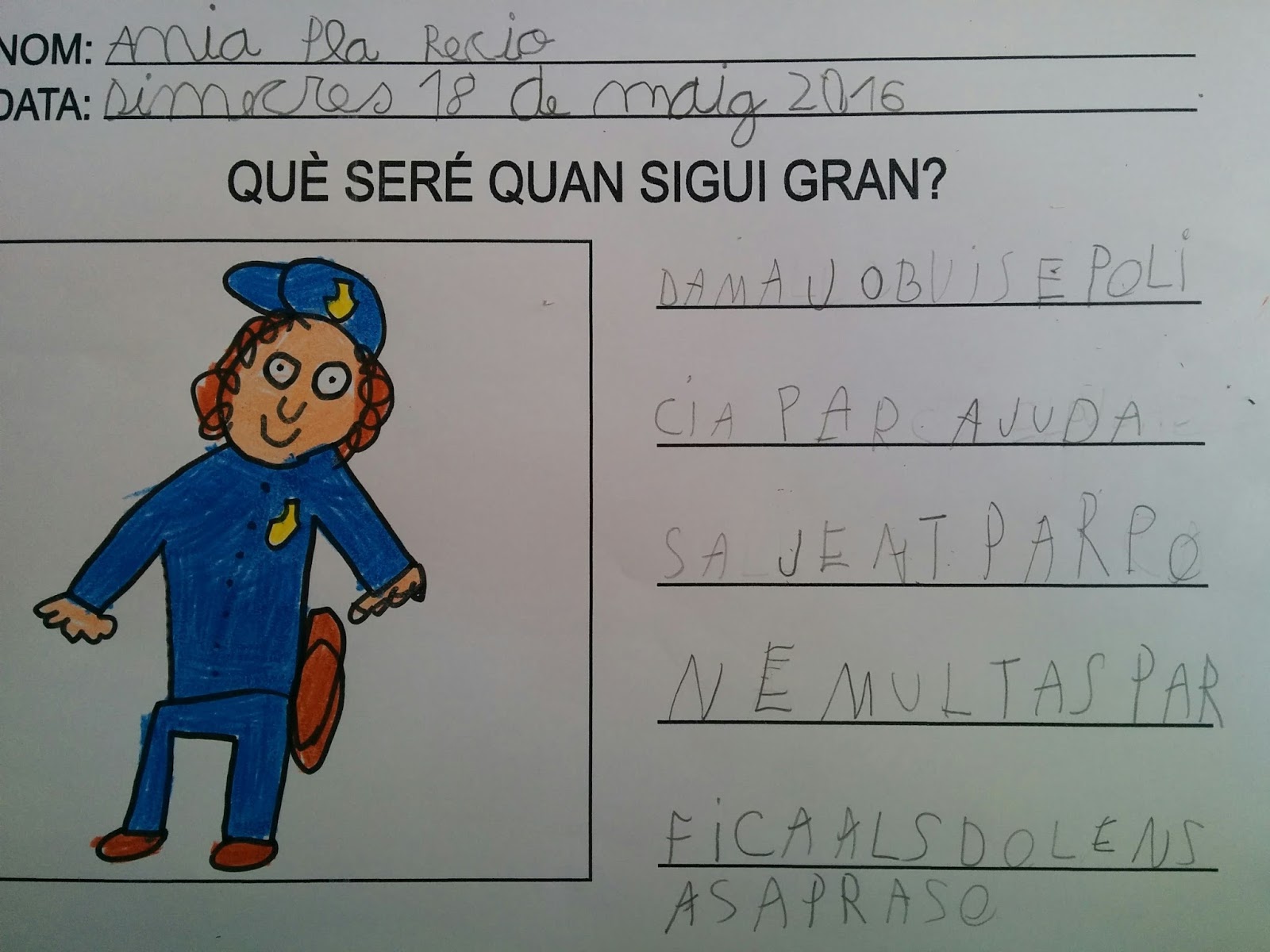 "DEMÀ JO VULL SER POLICIA PER AJUDAR A SA GENT, POSAR MULTES I PER FICAR ELS DOLENTS A SA PRESÓ"